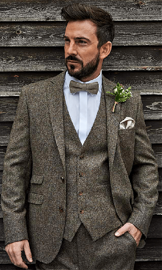 Tweed adds sophistication and flair to your basic outfit. If you want to stand out from the sea of men wearing suits, you could add a black or a brown tweed suit to your collection.